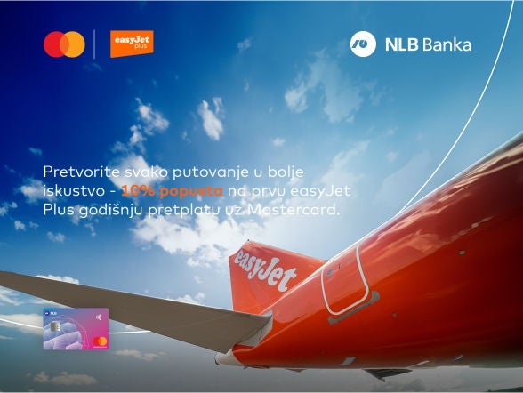 Putujte jednostavno i bezbrižno uz easyJet Plus. Prijavite se za članstvo u easyJet Plus programu i ostvarite 10% popusta na godišnju pretplatu, te iskoristite i druge pogodnosti koje vam omogućava vaša NLB Mastercard kartica.
