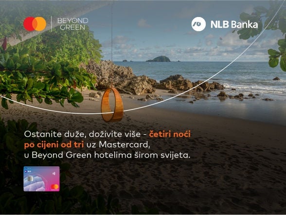 Rezervišite trodnevni boravak u nekom od hotela ili odmarališta na Beyond Green svojom NLB Mastercard karticom i ostvarite dodatno besplatno noćenje. Dobijate četiri noći po cijeni od tri, pružajući vam više vremena za istraživanje jedinstvenih lokacija koje slove za ekološki održive i luksuzne izbore. Rezervacija izvršiti koristeći kod: MKTGMC