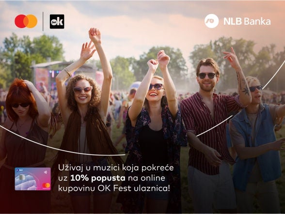 Plaćaj online svojom NLB Mastercard karticom i ostvari 10% popusta na kupovinu ulaznica i kamp paketa za OK Fest putem gigstix.ba platforme.