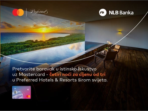Uz NLB Mastercard kartice i Preferred Hotels & Resorts, uživajte u besplatnom četvrtom noćenju u više od 650 luksuznih hotela širom svijeta.